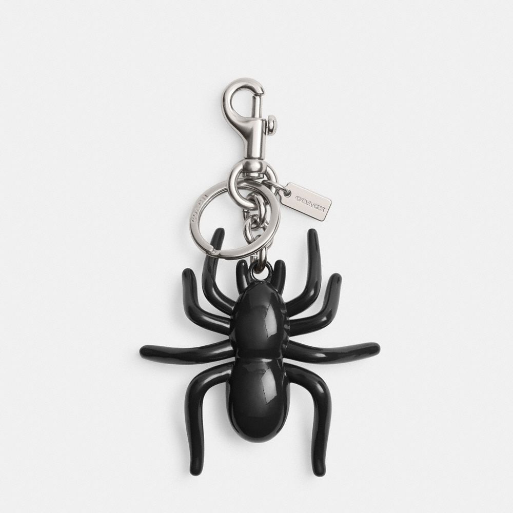 COACH®,Spider Bag Charm,Bag Charm,3D Embellishment,Logo,Embossed,Silver Metal,Day Party,Black,Front View