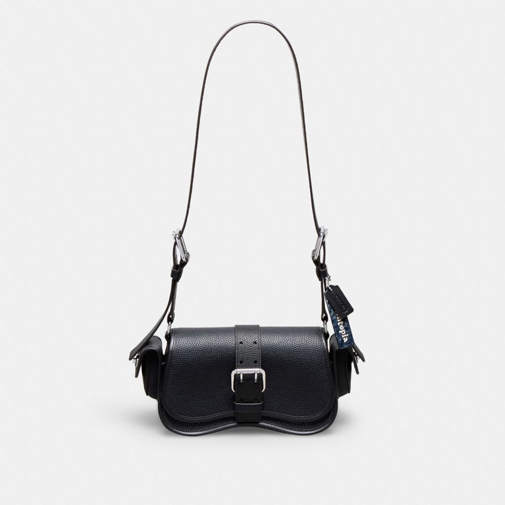 Pockets with purpose: a utilitarian and slightly larger take on our beloved Wavy Dinky, this versatile shoulder bag features a modular design featuring exterior pockets that can be removed and added per your liking. Secure your essentials with an exterior buckle. Lengthen the adjustable strap to wear it as a crossbody. This version is crafted in pebbled Coachtopia leather (crafted with at least 50% recycled fibers from leather scraps).
