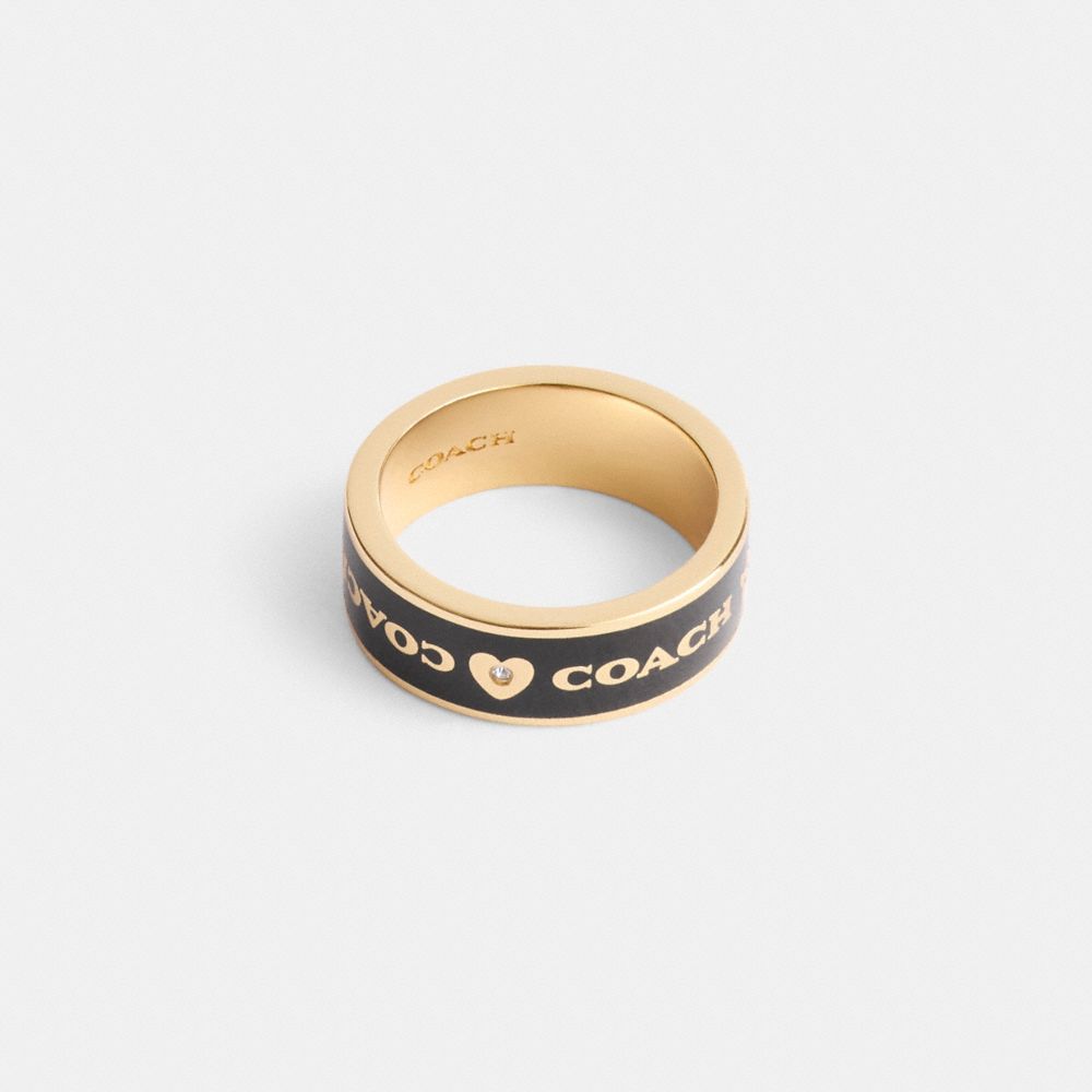 COACH®,Coach Heart And Star Enamel Ring,Single Band,Cubic Zirconia,Enamel,Logo,Lettering Word,Gem Embellishment,Heart Embe...,Multi Color,Front View