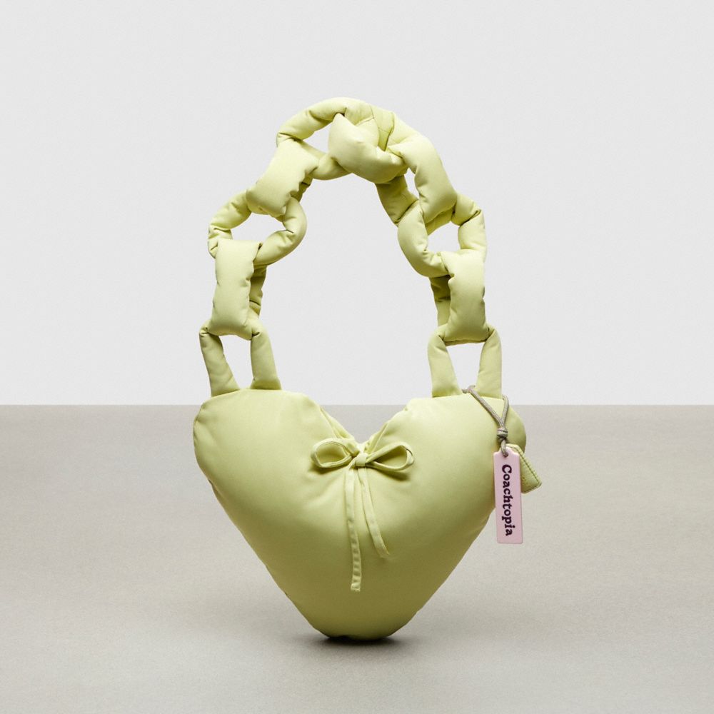Changing the shape of fashion: a collaboration with Queens-based designer and community member Marissa Crider (aka Offbeat Sweet) this monomaterial bag is not only heart shaped—yay—but soft to-the-touch, fitted with an ultra-comfortable chunky chain strap and crafted in 100% recycled PET plastic (rPET).