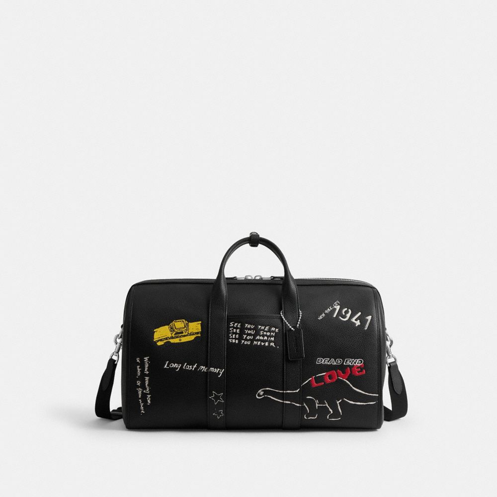 A bag as distinct as its namesake city, the Gotham is a sleek no-fuss carryall. With inside multifunction pockets for easy organization and a convenient outside pocket for access to essentials, this spacious Duffle 45 features an open interior with room for a 16" laptop, sneakers, clothes and more. Crafted of polished pebble leather detailed with our Coach Sketch print, a playful doodle motif of whimsical drawings and phrases inspired by artistic notebook scribbling, it’s secured by a zip closure and finished with a detachable strap for shoulder or crossbody wear.