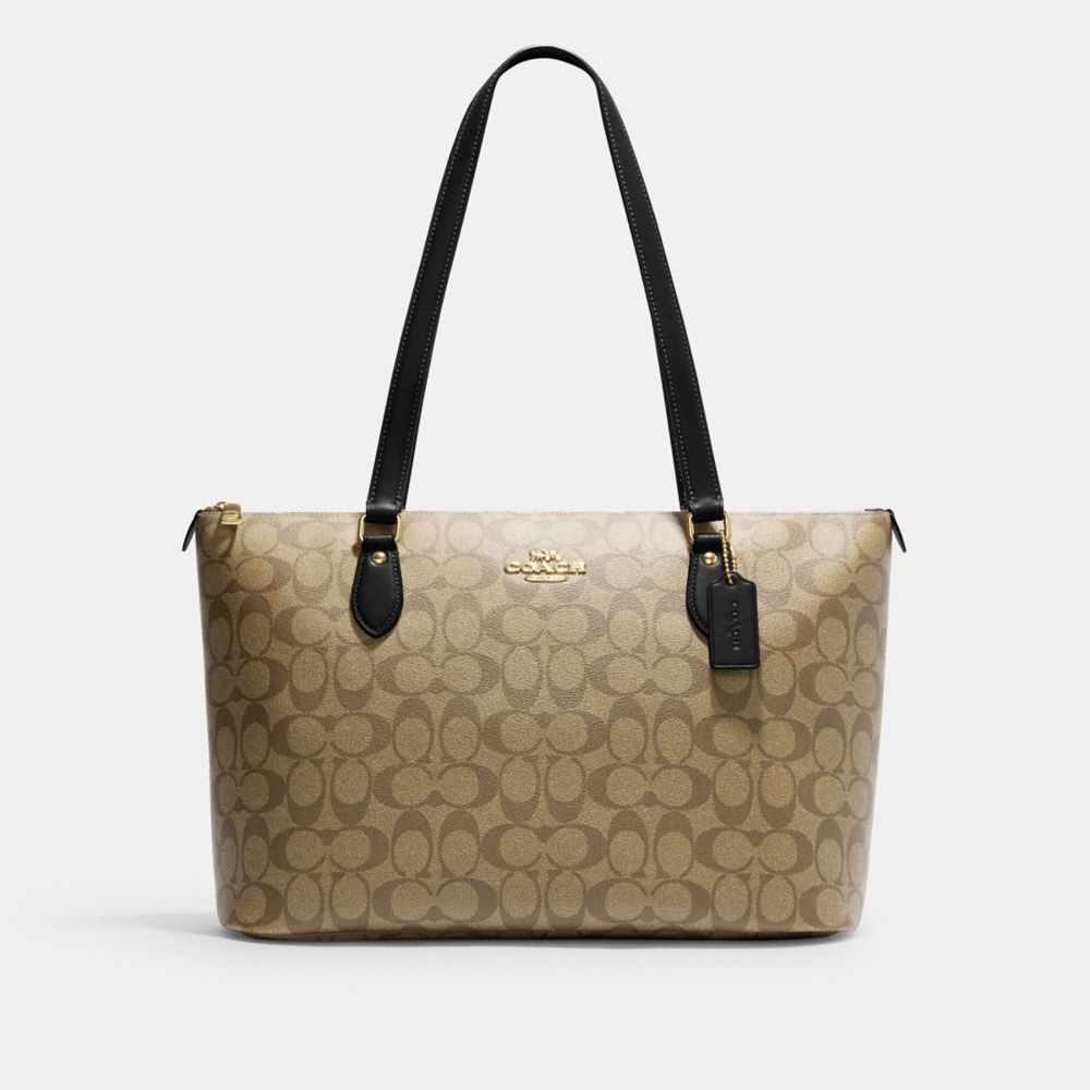 COACH®,Gallery Tote Bag In Signature Canvas,Leather,Canvas,Tote,PVC,Logo,Gold Metal,Work,Multi Color,Front View