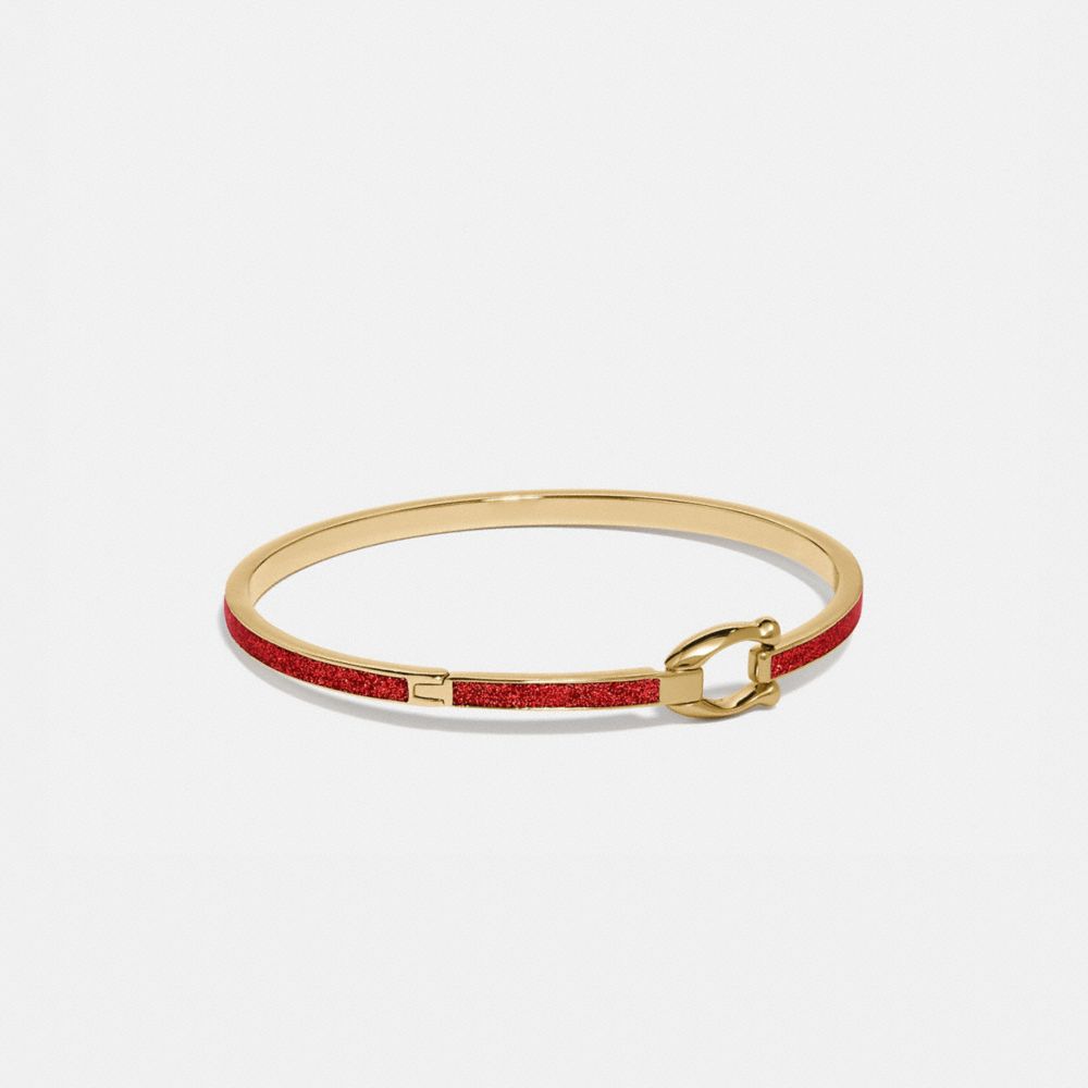 Our Signature doubles as a hook closure on this minimalist hinged bangle. The playful style is crafted in smooth enamel glistening with glittery accents for a touch of sparkle.