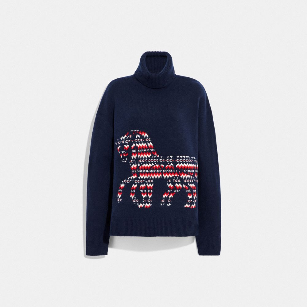 Horse And Carriage Intarsia Turtleneck Sweater In Recycled Wool And Cashmere
