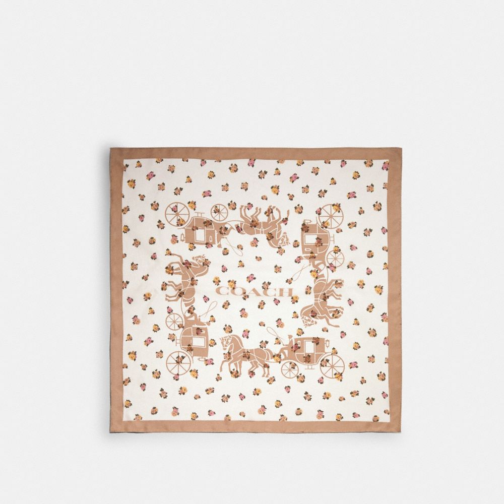 Horse And Carriage Tea Rose Print Silk Bandana