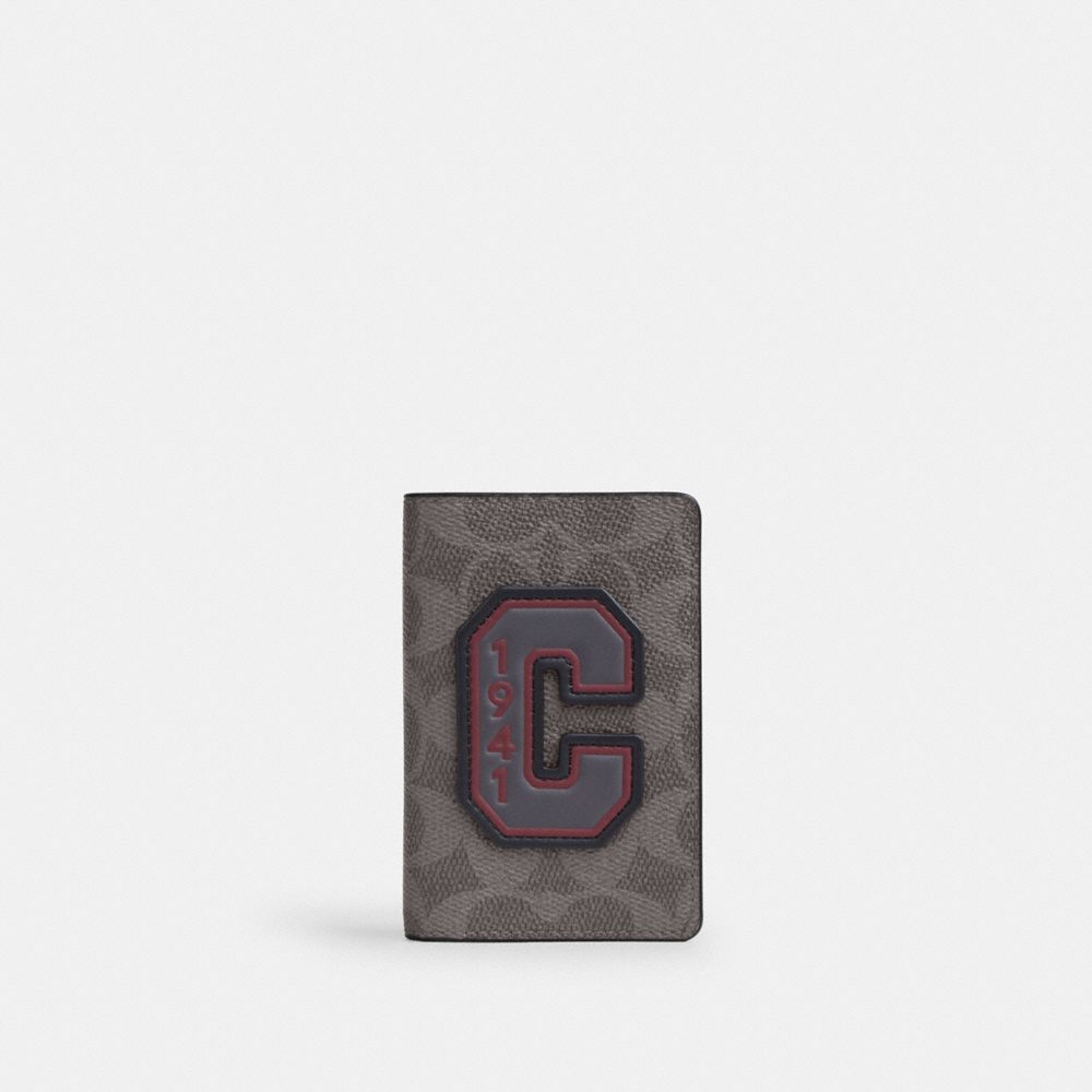 COACH®,Id Card Wallet In Signature Canvas With Patches,Gray,Front View