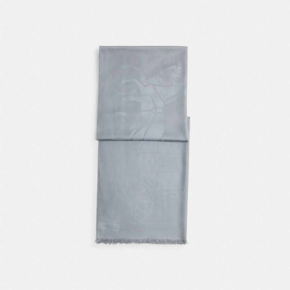 COACH®,Jumbo Horse And Carriage Wrap,Wool,Rectangle,Frayed,Logo,Casual,Gray,Front View