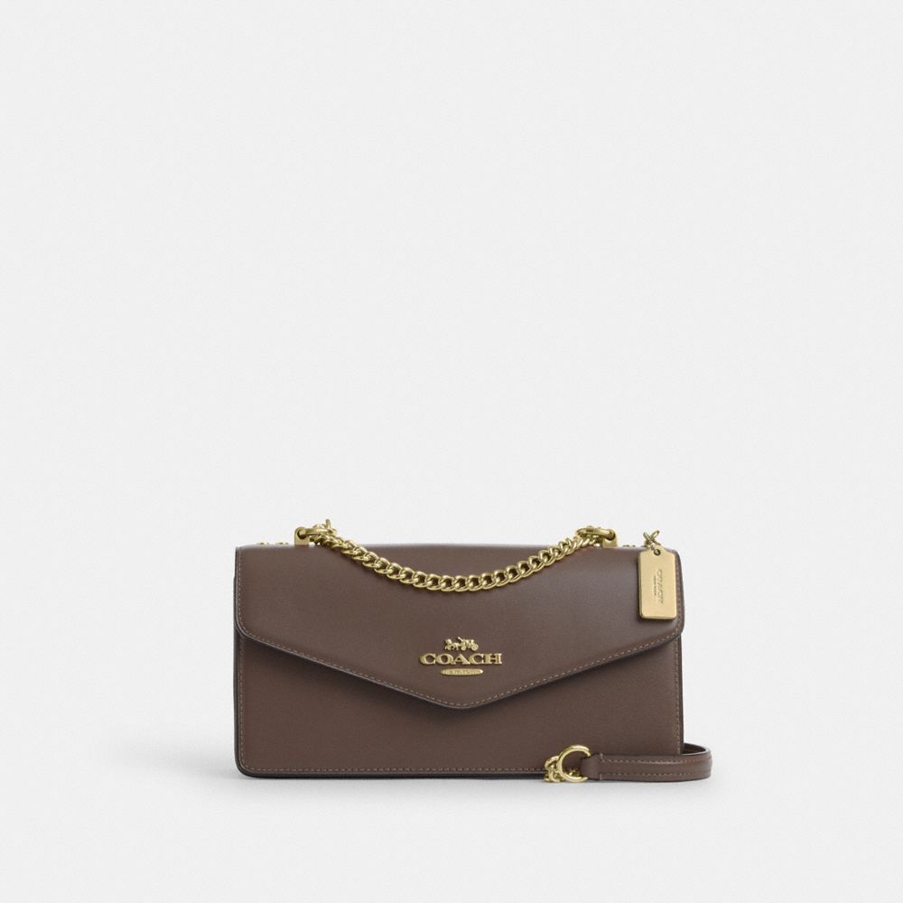 COACH®,Klare Envelope Crossbody Bag,Leather,Crossbody,Metal,Logo,3 in 1,Gold Metal,Day Party,Brown
