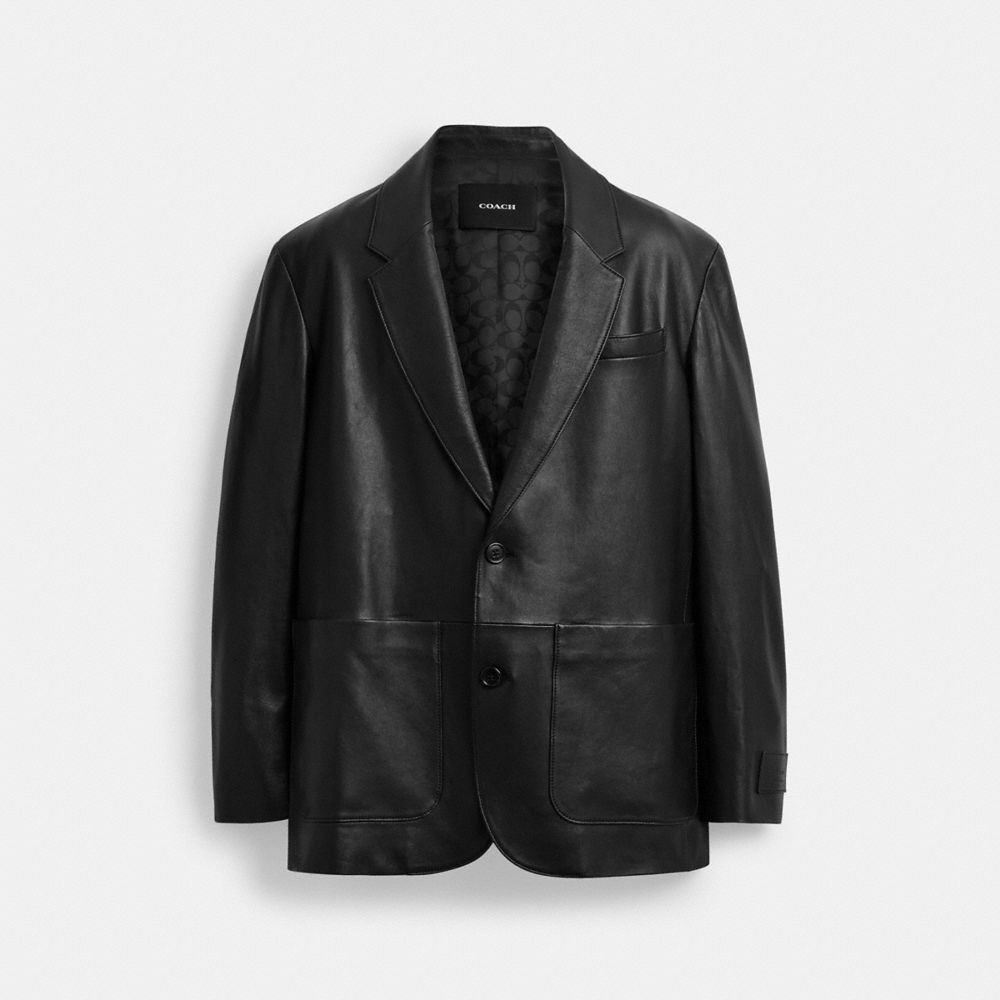 COACH®,Leather Blazer,Viscose,Lambskin,Polyester,Blazer,Leather,Applique,Logo,Casual,Black,Front View
