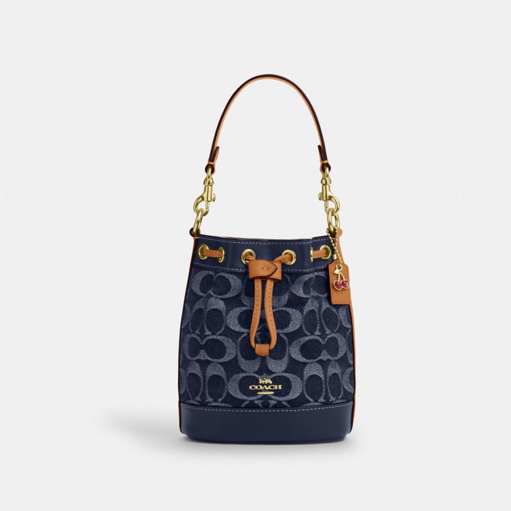 COACH®,Mini Bucket Bag In Signature Denim,,Front View