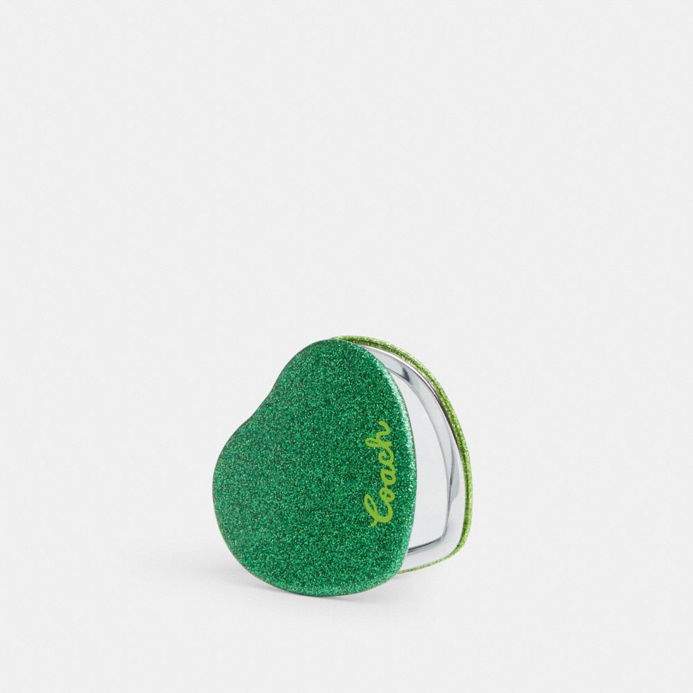 The Glitter Heart Compact Mirror is crafted of leather, metal and glass for a touch of whimsy. With its small size and charming appearance, this cute compact mirror reflects your personal style. Perfect for quick touch-ups during a night out or right before a date, this heart compact mirror fits easily into your bag or pocket.