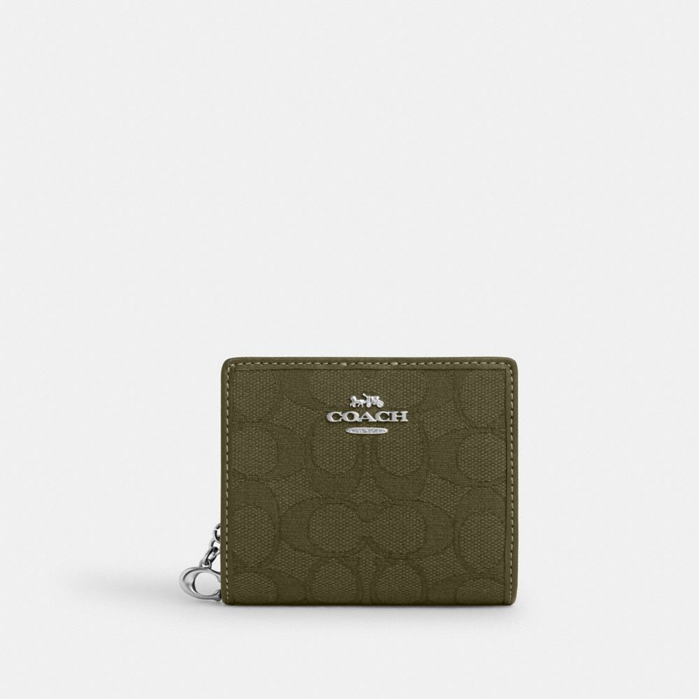 The Snap Wallet is a small but mighty essential. Crafted of Signature jacquard, this small snap wallet features a full-length bill compartment, three credit card slots and a zip pocket to collect your spare change. Secured by a snap closure, this jacquard snap wallet ensures your cards and cash remain safe and organized. Its compact size easily slips into your bag or pocket for moments when you need a quick grab and go.