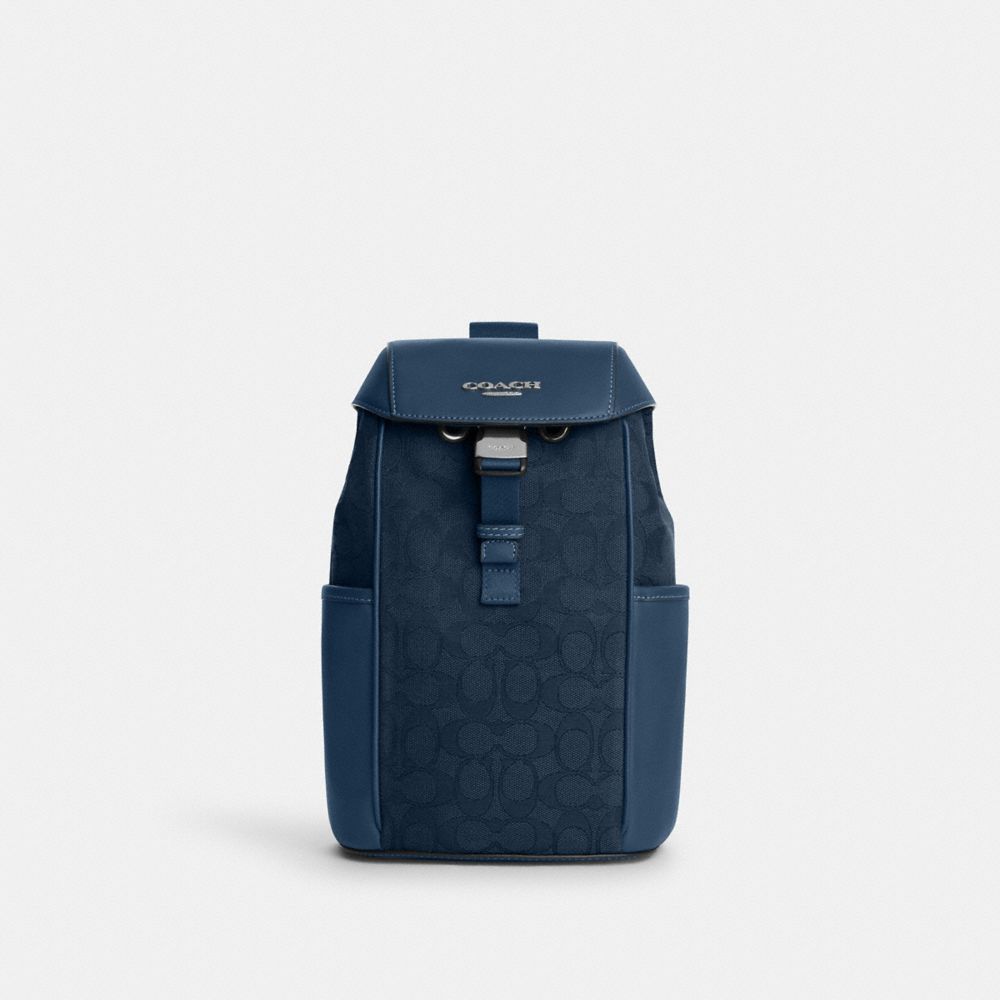 COACH®,Racer Pack In Signature Jacquard,Recycled Polyester,Cotton,Slingback,Mixed Media,Pen Holder,Adjustable,Casual,Navy,Detail View