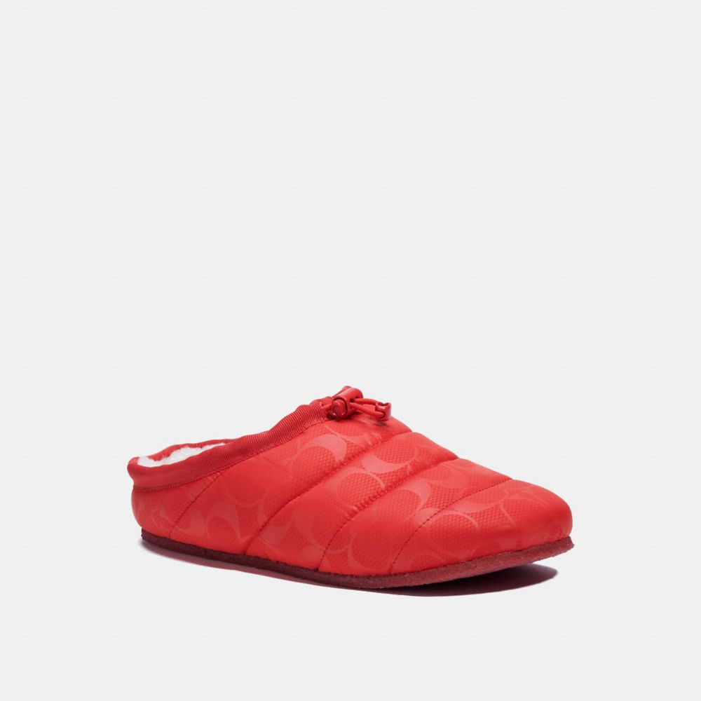 A puffer for your feet, this cozy warm slipper is printed with our Signature and lined in plush faux shearling. The indoor/outdoor slip-on style features a drawstring toggle stop closure and flexible non-slip rubber sole.