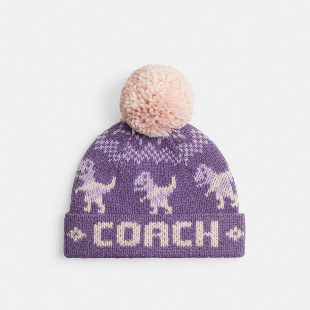 Have a roaring good time with this beanie featuring fun-loving Coach mascot Rexy set amidst a classic winter fair isle pattern. Crafted of soft wool, the warm style is finished with our name on the brim and a playful top pom-pom.