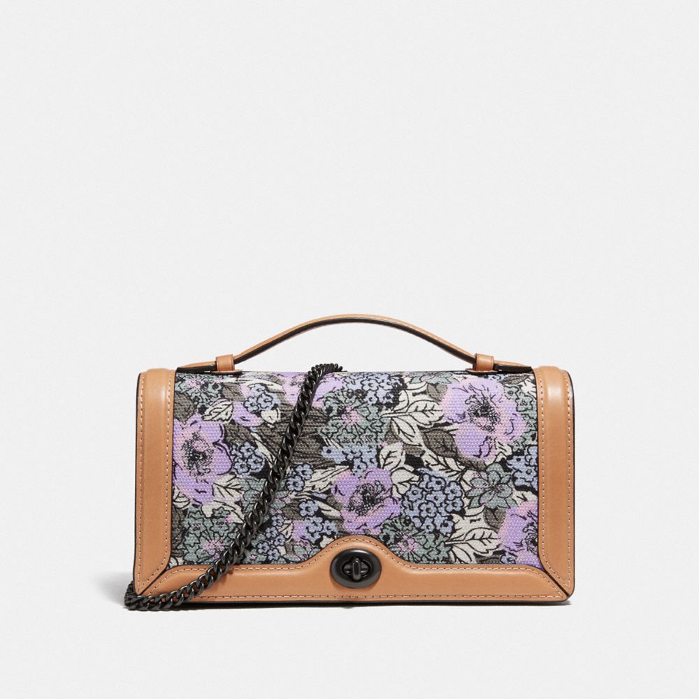 Based on a Coach favorite introduced in the 1970s, the Riley is a slender design perfect for nights out and days on the go. Finished with a ladylike top handle and an elegant chain crossbody strap for versatile wear, this smooth leather and durable canvas clutch features a vivid ‘70s-inspired floral print.
