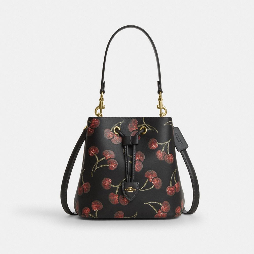 COACH®,Rowan Bucket Bag With Cherry Print,Black