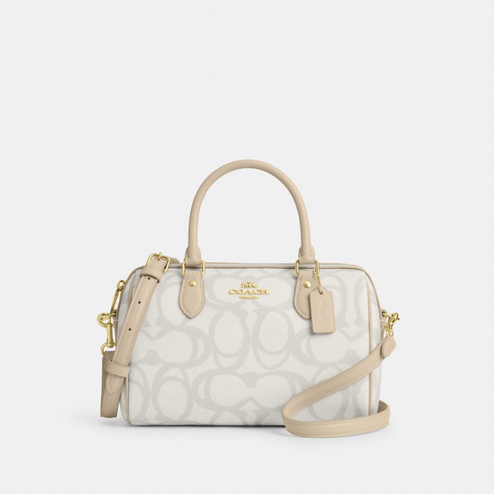 COACH®,Rowan Satchel Bag In Sketch Signature Canvas,Canvas,Bowler Bag,Piping,Gold Metal,Casual,Work,White
