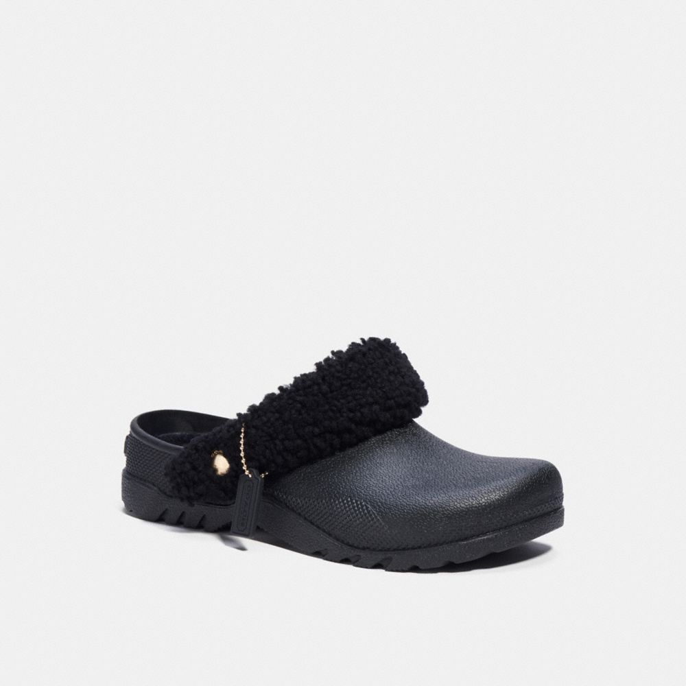 A slip-on-and-go style that’s ready rain or shine, our rubber Lola clog features plush, soft shearling that pads every step. The weather-proof rubber style has a durable lug sole for extra traction and is finished with our Coach hardware for a touch of shine.