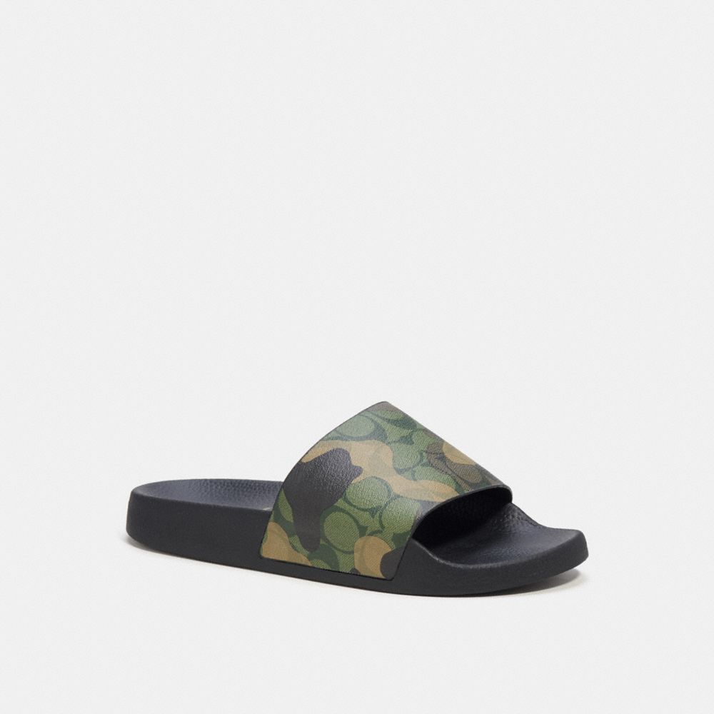 COACH®,Slide In Camo Print With Signature,Rubber,Canvas,Slides,Logo,Casual,Multi Color,Detail View
