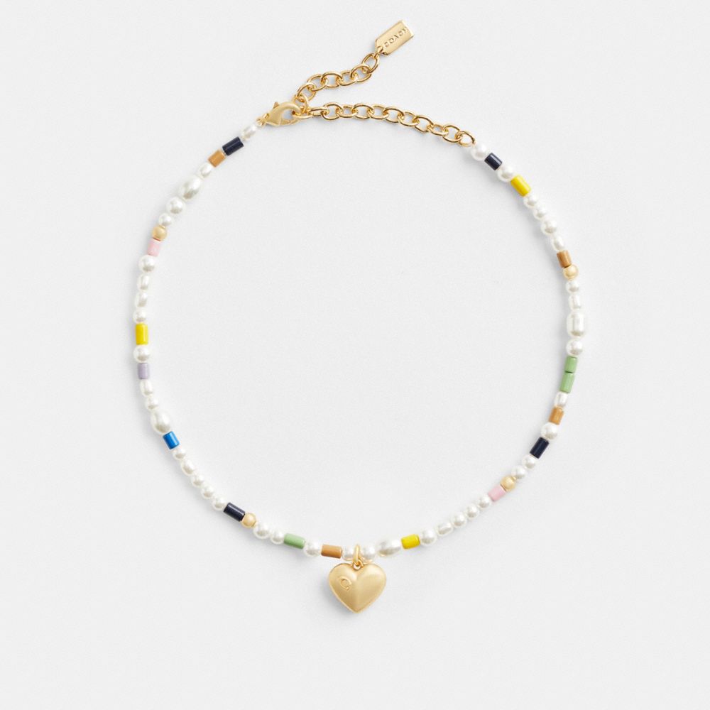 Strung with glass pearls and colorful enamel beads, this choker features our polished Signature heart pendant for a sweet heritage touch. The necklace is finished with an adjustable clasp closure to ensure a comfortable fit.