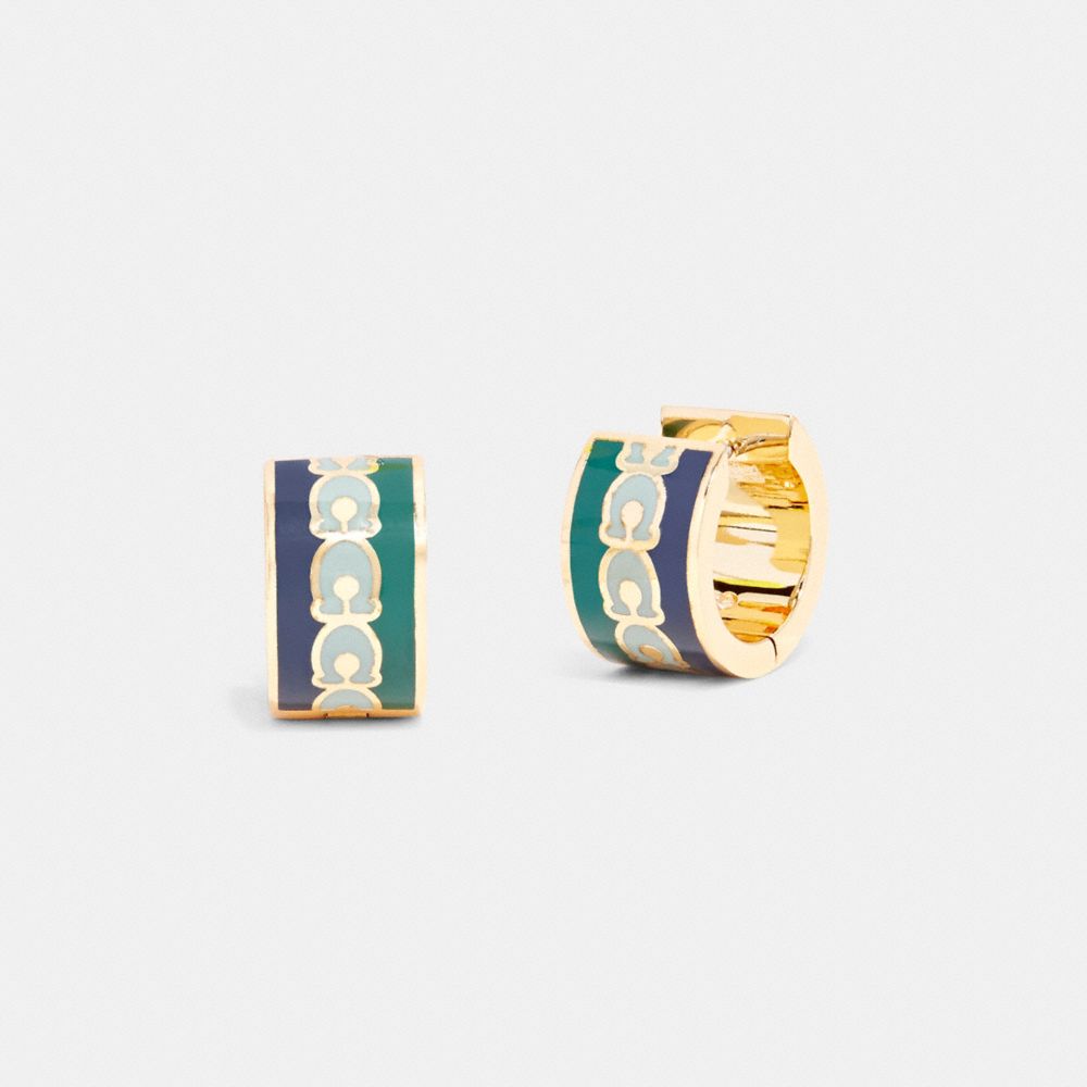 Crafted of polished smooth enamel, these colorblock hoop earrings feature our Signature for a heritage touch. The modern design hugs the earlobe.