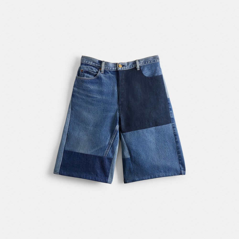 Patch perfect: these Skater Shorts in Repurposed Denim reimagine deadstock and vintage denim pieces in a long, loose, Y2K-inspired silhouette.