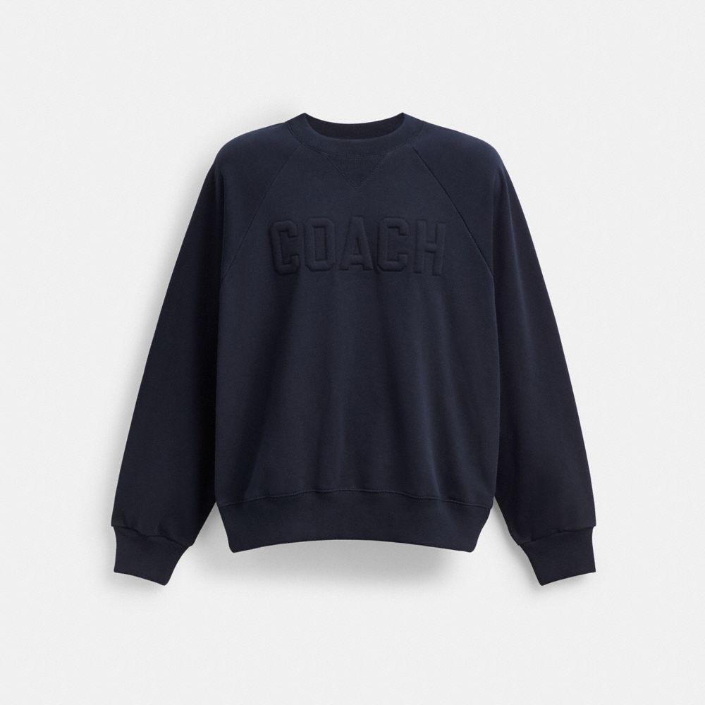 COACH®,Debossed Raglan Crewneck Sweatshirt,Cotton,Sweatshirt,Quilted,Casual,Navy,Front View