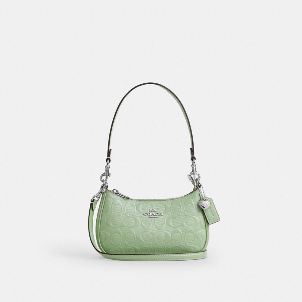 COACH®,Teri Mini Crossbody Bag In Signature Leather With Heart Charm,Green,Detail View